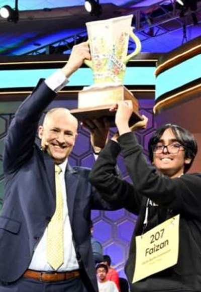 ٹیکساس(پاکستان نیوز) ٹیکساس سے تعلق رکھنے والے 13 سالہ پاکستانی نژاد امریکی فیضان ذکی نے 29 مئی کی رات 2025 کی اسکرپس نیشنل اسپیلنگ بی جیت لی، 21ویں راؤنڈ میں لفظ “éclaircissement” کے صحیح ہجے کر کے ٹائٹل کا دعویٰ کیا، جس کا مطلب ہے “کسی چیز کو صاف کرنا”۔ذکی سی ایم میں ساتویں جماعت کا طالب علم ہے جس نے رائس مڈل اسکول میں اعتماد طریقے سے آخری لفظ کے ہجے کرنے کے بعد سٹیج پر راحت کی سانس لی، E.W. Scripps کمپنی کے صدر اور سی ای او ایڈم سیمسن نے کہا کہ فیضان نے اس عزم کی مثال دی جو ایک چیمپئن کی تعریف کرتا ہے۔نیشنل ہاربر، میری لینڈ میں منعقدہ 100ویں اسکرپس نیشنل اسپیلنگ بی کے آخری لمحات سنسنی سے بھر ے تھے۔ ذکی، جو گزشتہ سال ٹائی بریکر اسپیل آف میں ہندوستانی نژاد بروہت سوما سے ٹائٹل ہار گئے تھے، نے رات کے اوائل میں ایک حیران کن غلطی کی لیکن اسے ایک اور شاٹ ملا جب اسپیلرز کو اس نے واپس جانے دیا تھا۔ اس نے بالآخر آٹھ فائنلسٹ کو پیچھے چھوڑ دیا۔ اس نے پہلی بار 2019 میں 7 سال کی عمر میں مقابلہ کیا، 370 ویں نمبر پر رہا۔ وہ 2023 میں 21 ویں نمبر پر تھا اور 2024 میں رنرز اپ تھا۔ اس کی استقامت نے اسے نایاب کمپنی میں جگہ دی ہے اور وہ بی کی تاریخ میں صرف پانچویں اسپیلر ہیں جنہوں نے پچھلے سال دوسرے نمبر پر رہنے کے بعد یہ ٹائٹل جیتا۔زکی نے چیمپیئن شپ ٹرافی، اسکرپس کپ کے ساتھ، Scripps سے $50,000 کا نقد انعام حاصل کیا۔ اسے میریمـویبسٹر سے $2,500 کا نقد انعام اور ریفرنس لائبریری، $400 کا برٹانیکا حوالہ سیٹ اور تین سالہ برٹانیکا آن لائن پریمیم رکنیت، اپنی پسند کے اسکول کو عطیہ کرنے کے لیے $1,000 سکالسٹک ڈالرز، اور اس اسکول کے لیے نیوزـOـMatic کی پانچ سالہ رکنیت بھی ملتی ہے۔ اسے ڈلاس اسپورٹس کمیشن نے سپانسر کیا۔اس سال کی سپیلنگ بی نے اپنی 100 ویں سالگرہ بھی منائی، جس میں سابق چیمپئنز کو شرکت کی دعوت دی گئی۔ یہ تقریب پہلی بار 1925 میں منعقد ہوئی تھی اور اس کے بعد سے امریکی تعلیم اور نوجوانوں کے مقابلے میں ایک واضح روایت بن گئی ہے۔